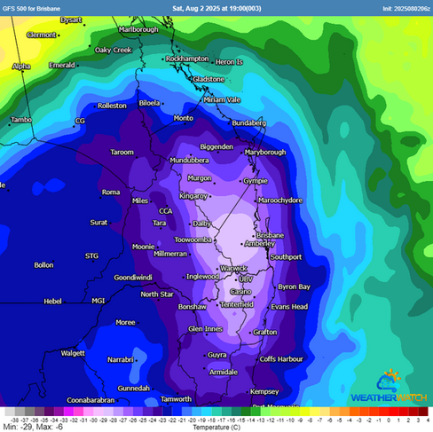Further north, light snow was reported around Stanthorpe, while hailstorms brought small hail to Toowoomba, Warwick, and parts of southeast Queensland. Thankfully, this hail was small and soft enough not to cause damage (which is typical of hail in these types of setups).
